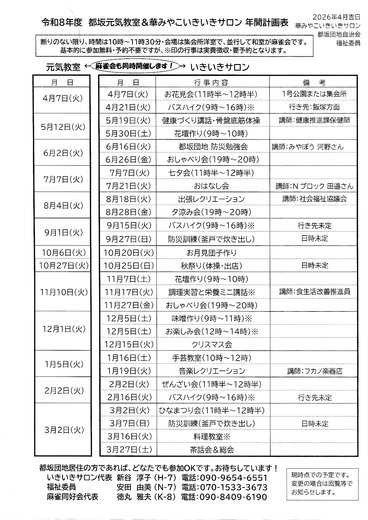 元気体操・いきいきサロン 2026年4月のご案内