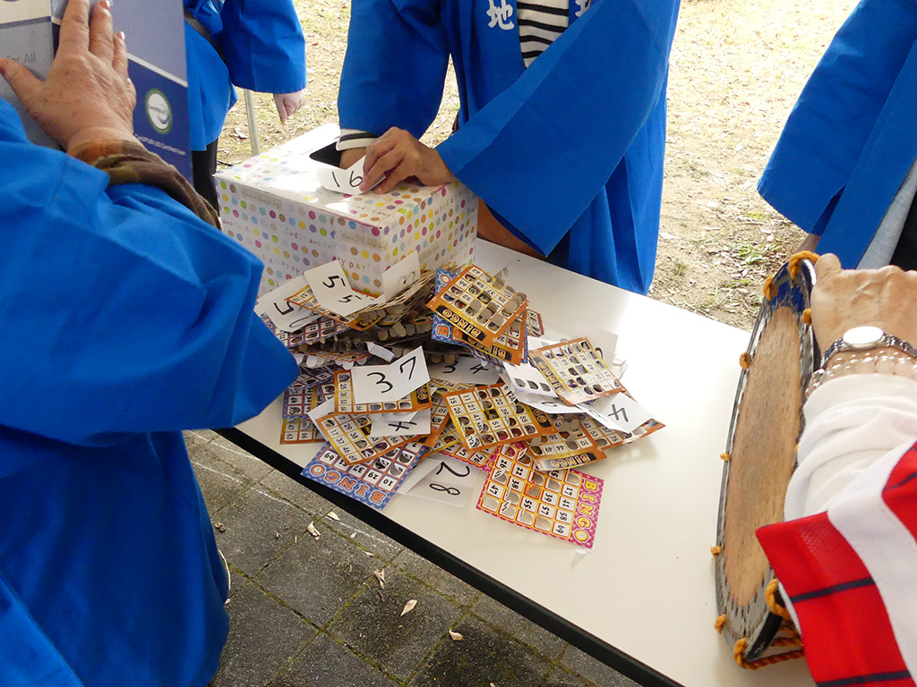 当日は、迫力ある高校生による和太鼓のパフォーマンスをはじめ、婦人会の体操・ダンス、防災クラブによる〇×クイズ、子ども早飲み大会、M☆K One.two.kidsの元気あふれるダンス、そしてビンゴゲーム大会まで、終始会場は大いに盛り上がりました。
